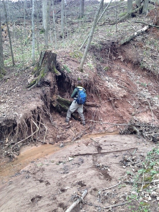 Soil sample being collected from eroded streambank.