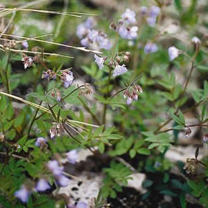 This plant likes dry-mesic to dry soils and partial to full sun. It grows less than a foot tall and has a purple flower. It blooms in April and May.