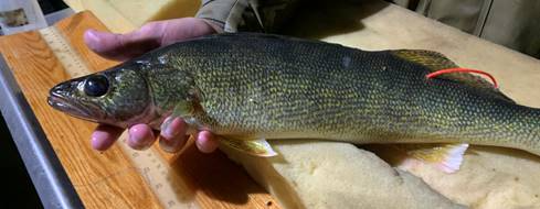 WDNR Oshkosh fisheries staff have began a new walleye movement sonic tagging study on the Winnebago System. The study includes tagging adult walleye with sonic tags during fall electrofishing surveys on Lake Winnebago and the upper Fox River. The goal of the study is to evaluate walleye movement on the system, particularly spring spawning runs. Staff have tagged 38 fish so far and aim to tag 70 fish total this fall. The study involves surgically implanting sonic tags into the abdomen of adult walleye and then the incision is sutured closed. All sonic tagged fish are also being tagged with orange loop tags that say RESEARCH REWARD and are worth $100 for anglers that report them (reward expires 12/31/2025). The sonic tags have 3.5 years of battery life and can be reused from harvested fish, so it is crucial to get them back from anglers if possible . The study is currently being funded by NRDA, the Department, and Walleyes for Tomorrow. Please pass this information around to your clubs and anglers.