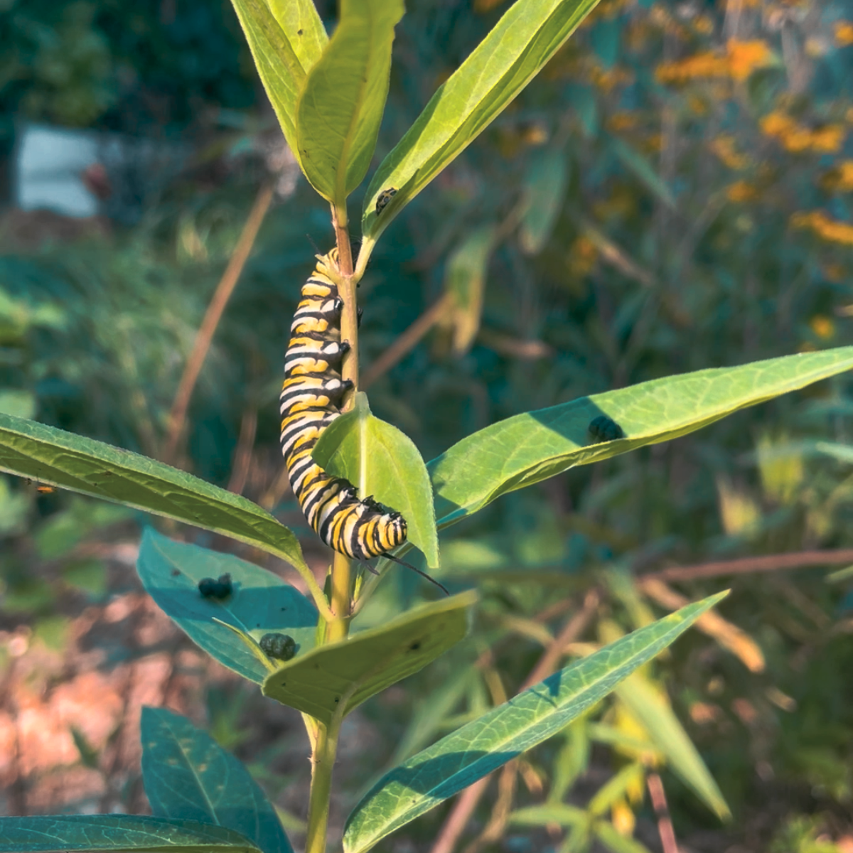 After hatching, the striped caterpillars begin feeding right away. And that feeding? It’s not just necessary, it’s life or death! Monarch caterpillars can only eat milkweed, and the toxins in the plant actually help protect them from predators.