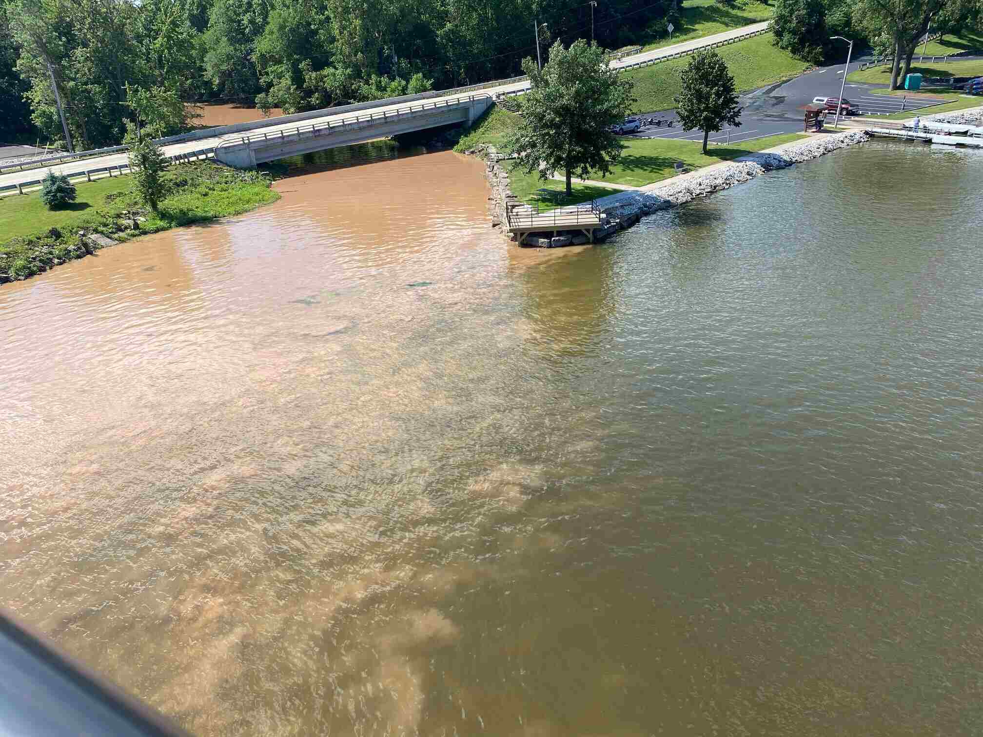 Plum Creek flows into the lower Fox River carrying so much sediment it looks like chocolate milk.