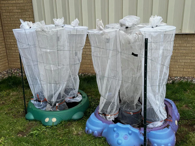 Now, in a quiet corner of her garden, five pots of purple loosestrife sit wrapped in netting, tucked into what her kids jokingly call the “death plant” cage. It’s not much to look at, just a tomato cage and some mesh, but this backyard setup plays a role in restoring local wetlands. It’s a nursery for Galerucella beetles, tiny insects that feed on the invasive loosestrife and help bring balance back to struggling ecosystems.