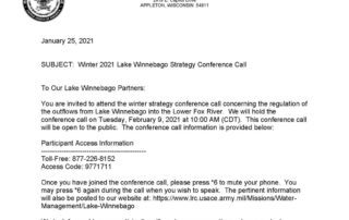 February 20th Lake Winnebago Strategy Conference Call – ARMY CORPS 2025-07-16T11:59:59-05:00By Fox-Wolf Watershed Alliance|