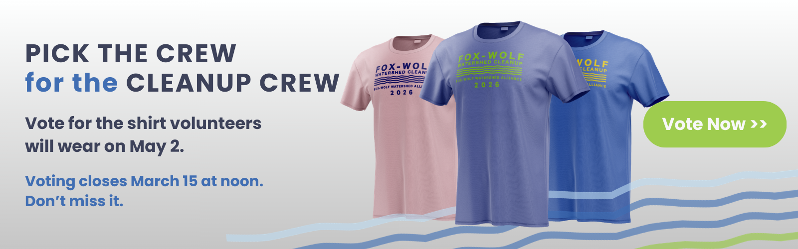 Northeast Wisconsin’s largest volunteer trash cleanup is happening Saturday, May 2, 2026. Join over 1,700 volunteers as we clean up over 65 public sites in our watershed. We anticipate removing over 7,000 pounds of trash.